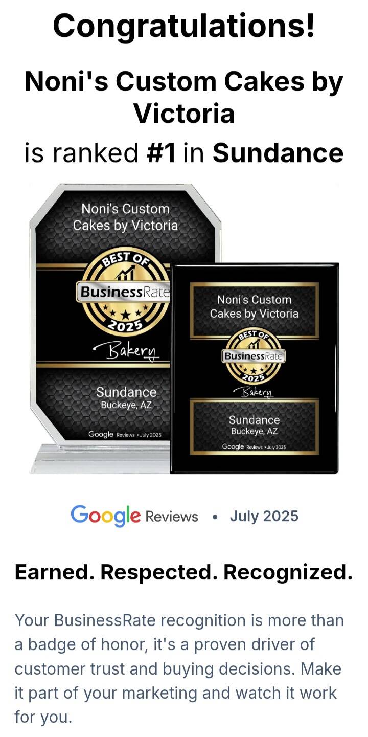 Noni's Custom Cakes by Victoria is a licensed cottage bakery in Buckeye, Arizona, dedicated to creating delectable and visually stunning custom cakes for all occasions. With a commitment to quality and personalized service, I aim to exceed your expectations with every bite.